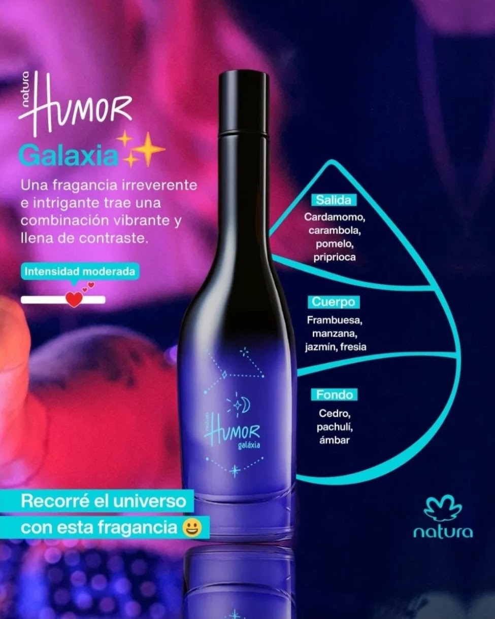 ¿Por qué elegir Humor Galaxia Femenino? Porque esta fragancia es más que un simple perfume; es una celebración de la alegría y la energía positiva que reside en cada mujer. Humor Galaxia Femenino te inspira a comenzar cada día con una sonrisa, recordándote que la vida es mejor con un toque de humor. Descubre el encanto de Humor Galaxia Femenino y déjate llevar por su frescura. ¡Atrévete a ser la mejor versión de ti misma con cada rociada!